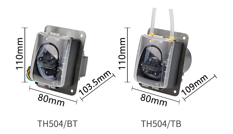TH504蠕動泵通過選擇不同電機類型和軟管內徑,流量范圍可達0~800mL/min。
