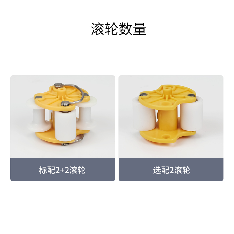 ■標(biāo)配2個(gè)固定導(dǎo)向輪+2個(gè)自適應(yīng)工作輪,也可選配2個(gè)固定工作輪