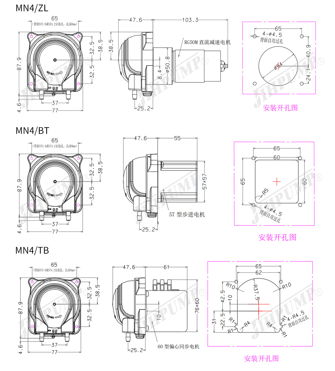 ■該款蠕動(dòng)泵可適配普通直流、直流行星、步進(jìn)、同步等多種驅(qū)動(dòng)電機(jī)